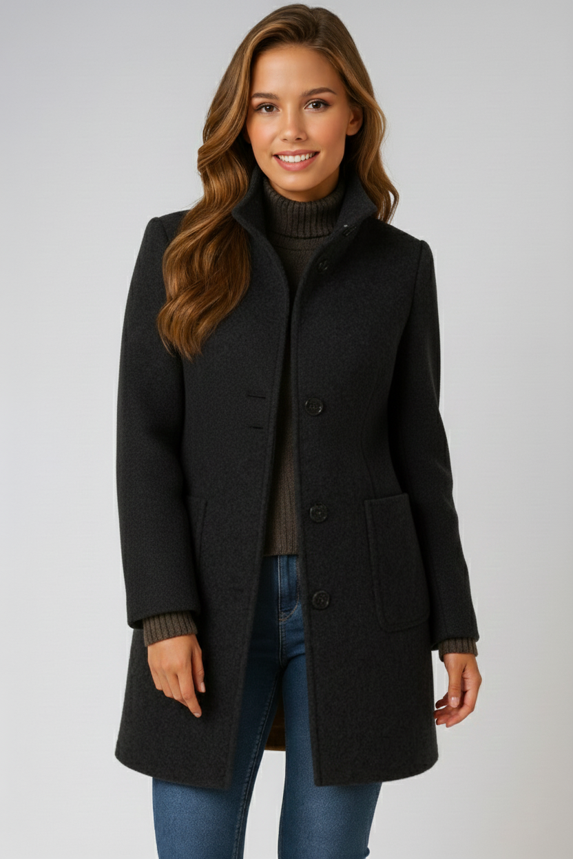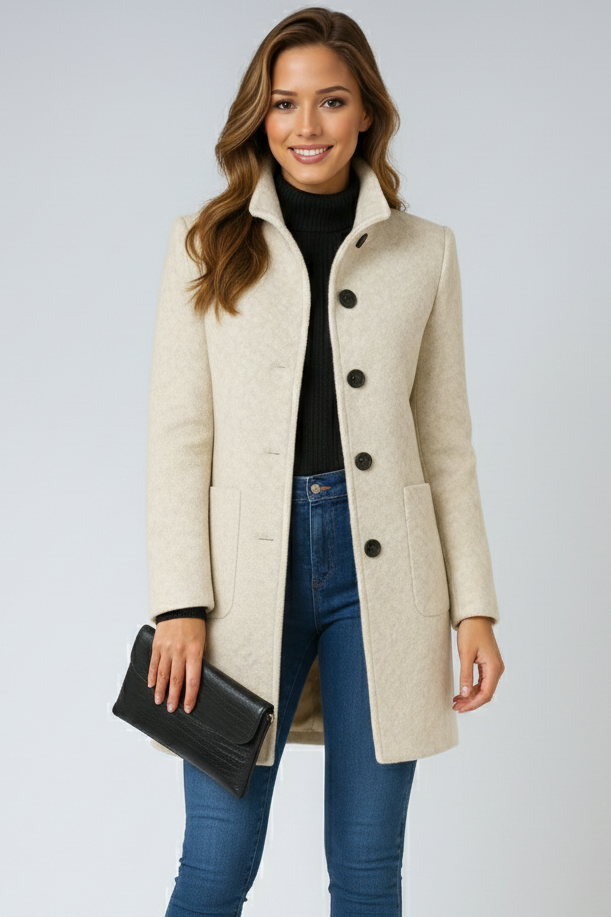 Kabát Tereza je ideálnou voľbou na túto sezónu. Jeho stojačik a štruktúrovaný strih vás udržia v teple a zároveň vám dodajú elegantný vzhľad, či už idete do práce alebo do mesta. Je to kúsky, ktorý spája štýl a maximálne pohodlie.